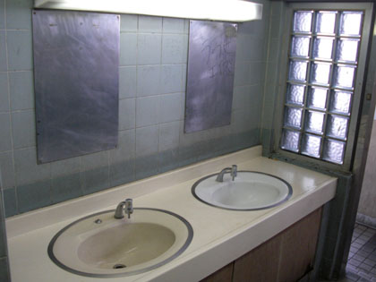 洗面台の鏡は悪意ある攻撃に強いアルミミラー。