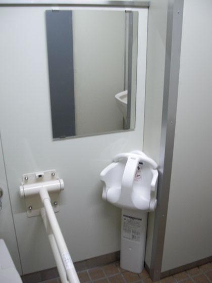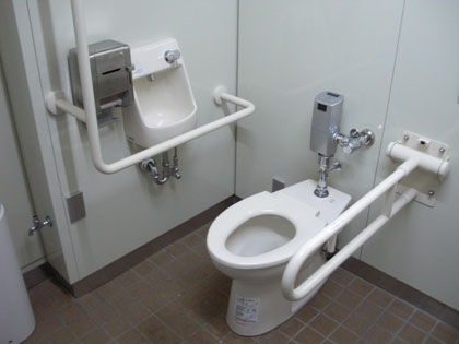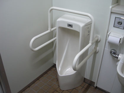 手すり付きの小用便器が、オストメイト専用便器の隣りにあるんですよね。