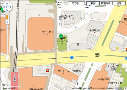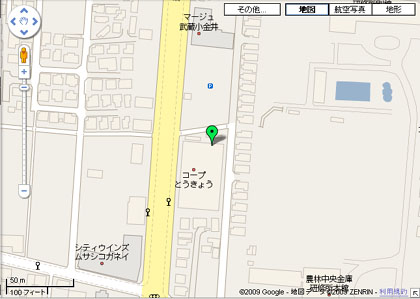地図上に武蔵小金井という名称を持つビルがありますが、この場所は小平市。