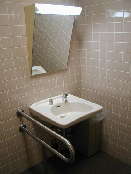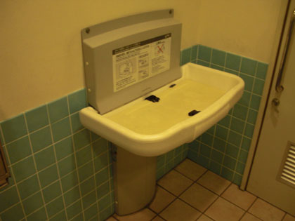 石鹸がない・・・・・・いやオムツ台やベッドシートなど、他の多目的トイレに普通にある装備がココの多目的トイレにはありません。