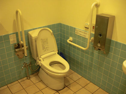 たいがいこういった店舗の外トイレは、ほぼ共通して多目的トイレとの共用だったりします。