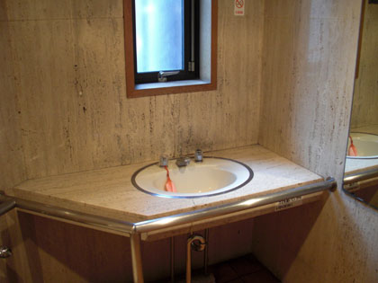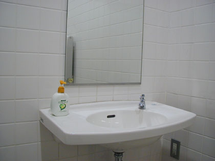 多目的トイレの洗面台もボトル石鹸ですが、石鹸が用意してあるだけ評価できます。
