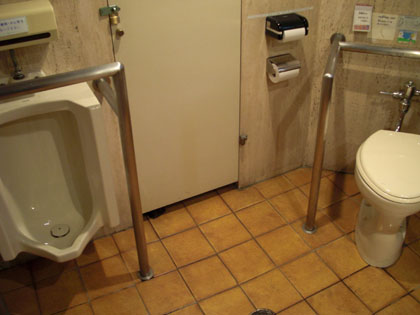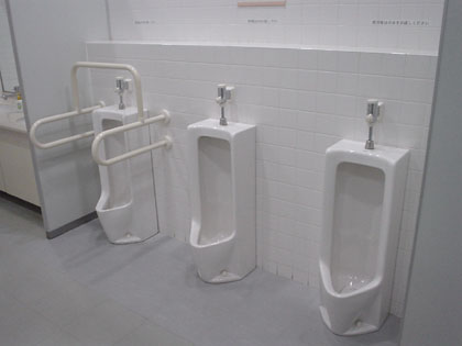 小便器の黒ずみが気になるところですが、公衆トイレとしてはキレイなほうで、臭いもしないのでまぁOKでしょう。