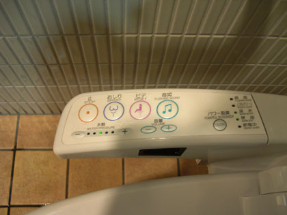 多目的トイレのシャワートイレは、多目的トイレではお馴染みの音姫付きのタイプ。