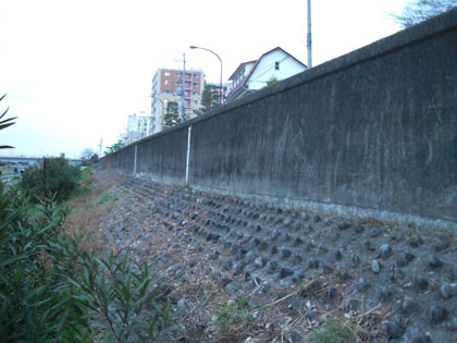 車が激しく行きかう車道の下は壁でして、