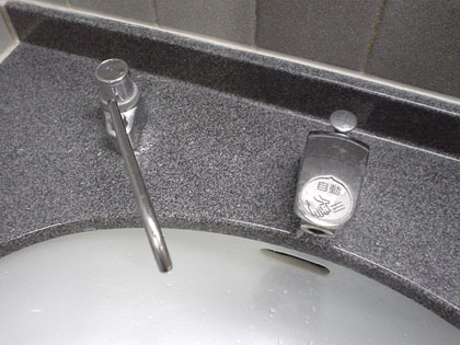 ブラウン色の洗面台に石鹸の類は設置されていません。