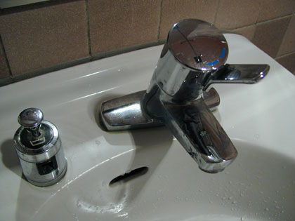 どちらに捻っても水しか出ない洗面台には、