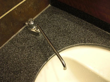 洗面台もそこそこ広く、エアータオルと液体石鹸がついています。