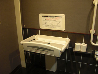 多目的トイレ内にも設置されているので、オムツの交換に行列ができることも少ないと思います。