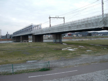 京王相模原線と多摩川とが交わる場所にある土手の道をあがると、