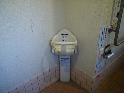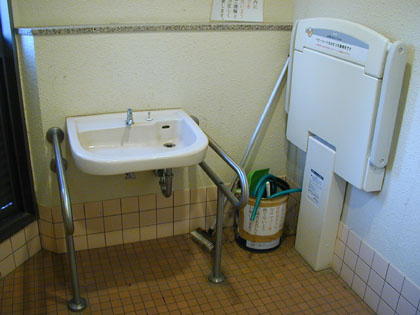その多目的トイレの様子はというと、まぁ普通の公衆トイレの多目的トイレといったところです。