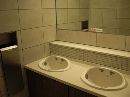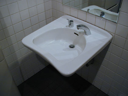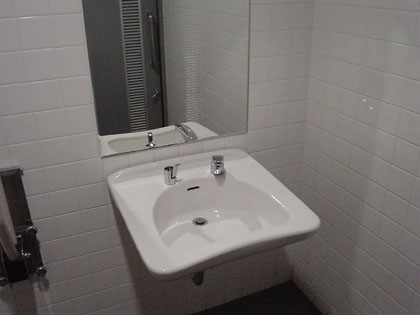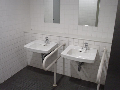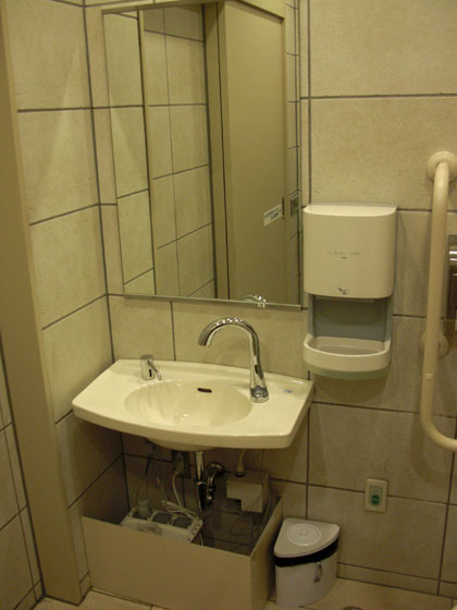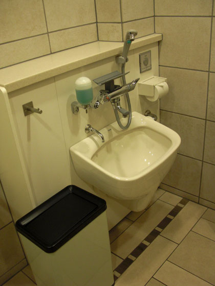 正面ゲートの多目的トイレと同じくその装備、洗面台に石鹸などはなく、