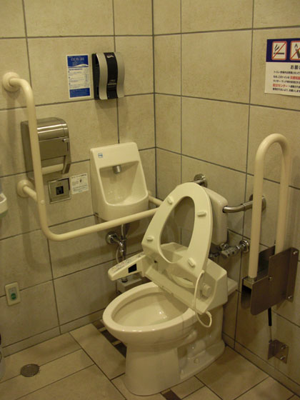 というわけで、大きな用向きの男性は必然的に多目的トイレを利用することになります。