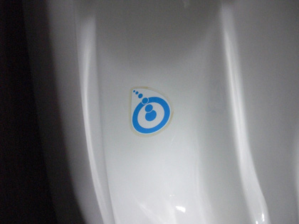 モニター下部の対人センサーで計測態勢に入り、便器内上部に取り付けられたセンサーで尿量を測定しているものと思われます。たぶん、便器についている“的シール”は、正しく計測するために必要なモノではないでしょうかね?