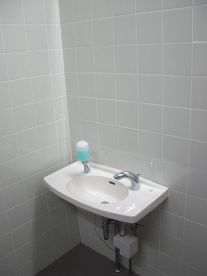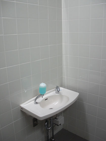 3階と5階にある男性用トイレはその構成はほとんど同じとなっており、両階ともに洗面台には液体石鹸、設置されている小用トイレは1つだけとなっています。