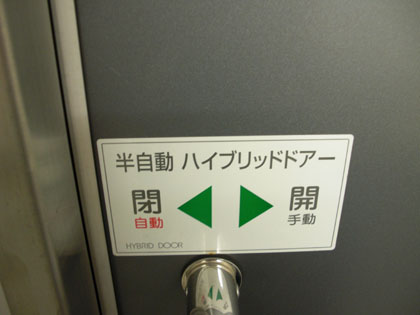 多目的トイレのドアは半自動 ハイブリッドドアー