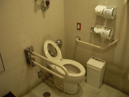 周りに一般トイレが無いため、急を要するみんながみんなココに集いやって来ます。ガチャガチャと次から次に鳴るドアに、蚤の心臓は爆発寸前。ゆっくりと用が足したい利用者には心が休まる事が無い、そんなトイレだと思います。