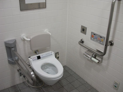 多目的トイレの中はなかなか広く、シャワートイレが嬉しい限りです。