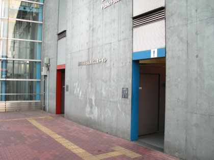 青と赤に縁取られた公衆トイレの入り口がありまして、