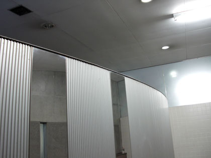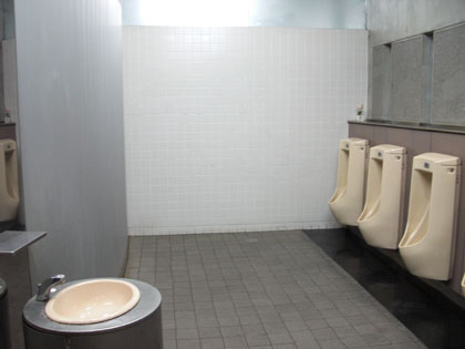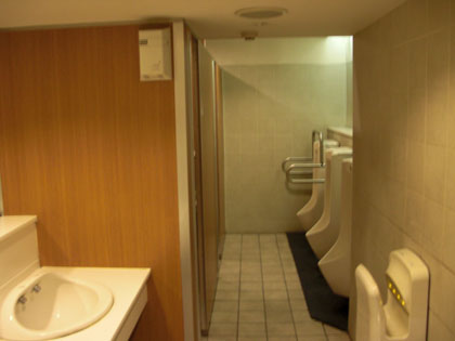 トイレはちょっと幅が狭く、小用トイレが3つ、個室トイレが2つの編成。