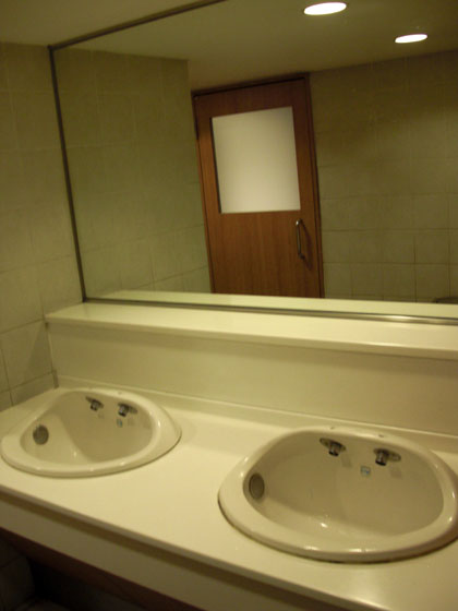 この階の洗面台は泡石鹸の吹き出る自動水栓タイプ。