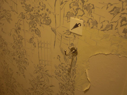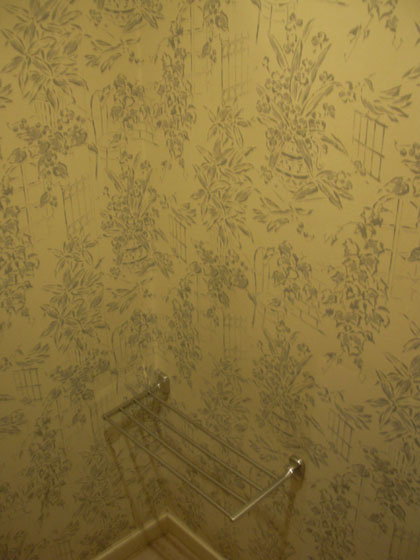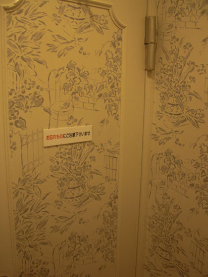 個室トイレの内側に貼られた壁紙に時代を感じてしまいますが、