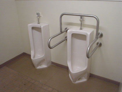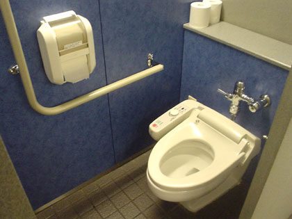 多目的トイレにおける手すり無しのプッシュ式石鹸は、ひじょうに使う側を選ぶような気がして、なんだかブルーデイ、アンニュイな気分にさせられます。ここはもう一手配慮が必要だと私個人は思うのですが、どうなんでしょうね?