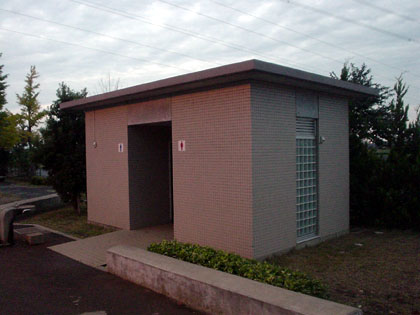 東側のトイレはテニスコートとスケボー広場の間にあり、利用者の憩いの場となっています。