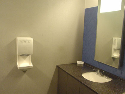 多目的トイレにオムツ台はありませんが、液体石鹸、エアータオルは設置されている点はなかなかです。