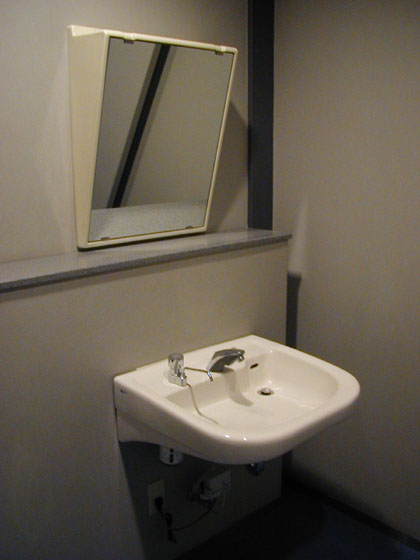 便器と洗面台のほかに何もなく、あまりにスッキリしすぎて中が広く感じられます。