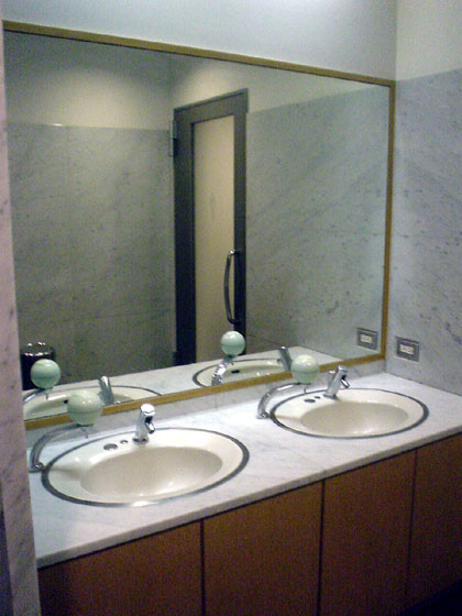 便器自体に奥行きがないため、目隠し用のシェルツェンが各便器毎についています。