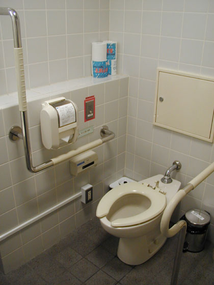 前に友人がこの点滅システムを知らないまま、多目的トイレのドアを開けたことがあるそうですが、多目的トイレの広いスペースその中央で・・・オバサンが一人、「ラジオ体操」を踊っている光景に目が点になったことがあるそうです。