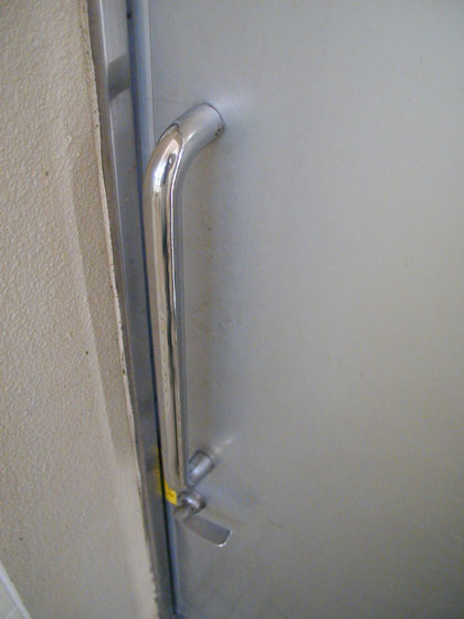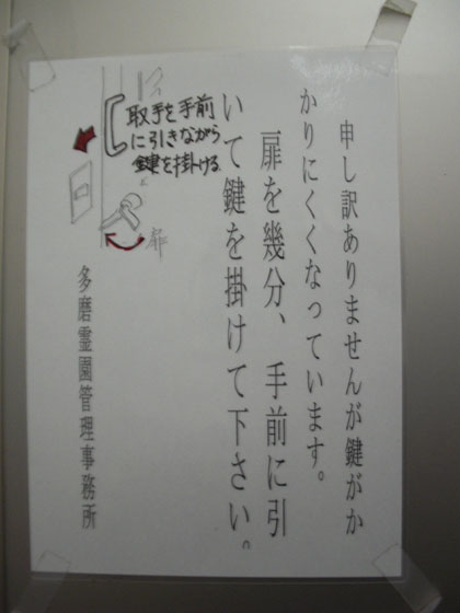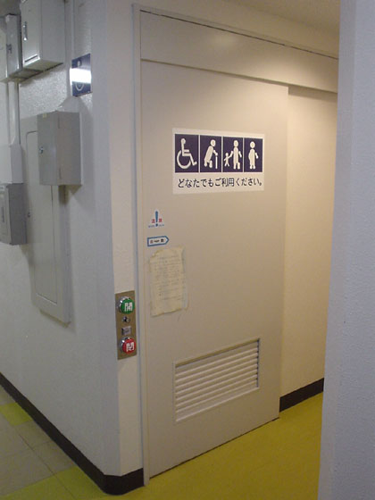 このタイプのドアの“かけ忘れ”はかなり多いほうでして、多目的トイレのドアを開けるときはまずノックなどをして、中の様子を確かめてからにした方がいいかも知れませんね。