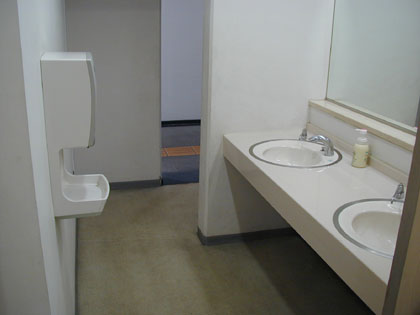 なかなか立派なこの3階建ての施設、今回はその1階トイレを見てみます。