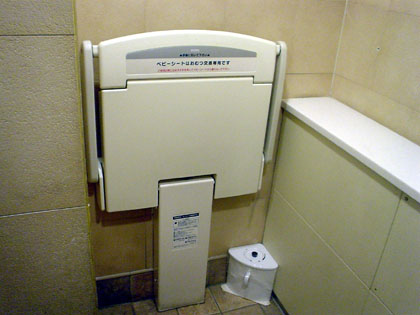 多目的トイレの外にオムツ台が設置されています。