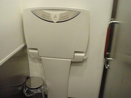 ベビーカーごと利用できる大型ブースとなっていてオムツ台(ゴミ箱付き)となっています。