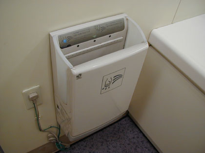 エアータオル一体型の洗面機具は狭いトイレにはとても有効な製品ですね。