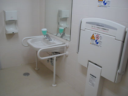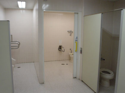 他に装備もない多目的トイレですが、その中の広さは十二分にありますから、オムツ台やオストメイトの追加装備を今後に期待したいものです。