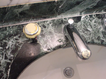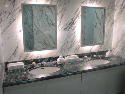 手拭きのティッシュもやはりデフォ、ここのも箱は大理石製ですな。