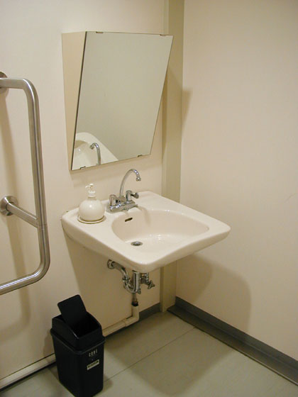 奥は幅が狭くなっているので、松葉杖とかを利用している人にとって、この手すりの位置はどうなんでしょうね?