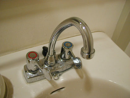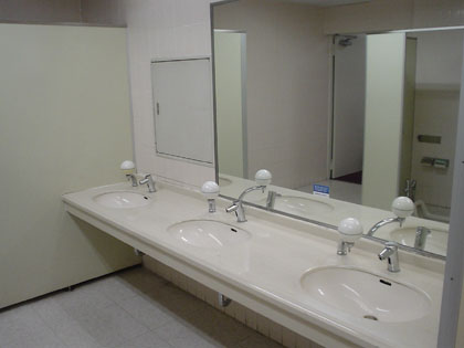 多目的トイレの洗面台は「お湯」と「水」とが選べる仕様となっています。