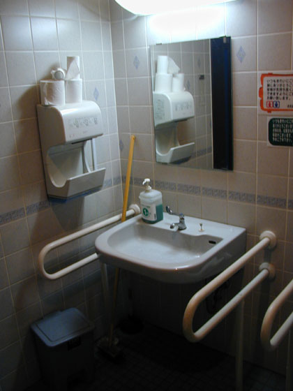 “ある”だけマシで良いのなら、この多目的トイレでも十分かも知れませんね。でもね、どうせ設置するのなら、もうちょっと利用しやすいヤツを大将、1つ頼むよ!とお願いしたいものです。
