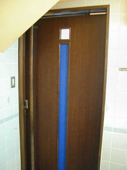 このトイレの位置は、2階カフェに通じる階段の下にありますが、まあ上の写真に見える天井の出っ張りに頭をぶつける人はたぶんいないでしょう。