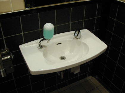 洗面台には液体石鹸。