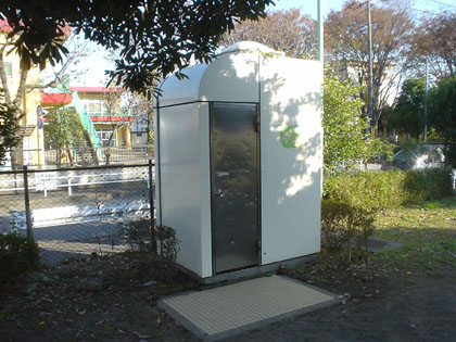 ここの公園のトイレは男女共用タイプ。