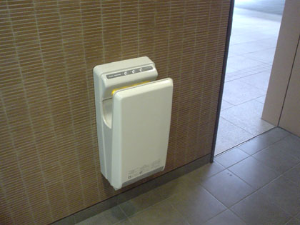 施設の外にあるトイレですが液体石鹸にエアータオルが設置されており、