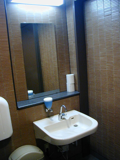 上の写真の入り口横に見える赤い女性用のマークは遠目に見ると、女性用トイレの存在を示しているようにも見えますが、