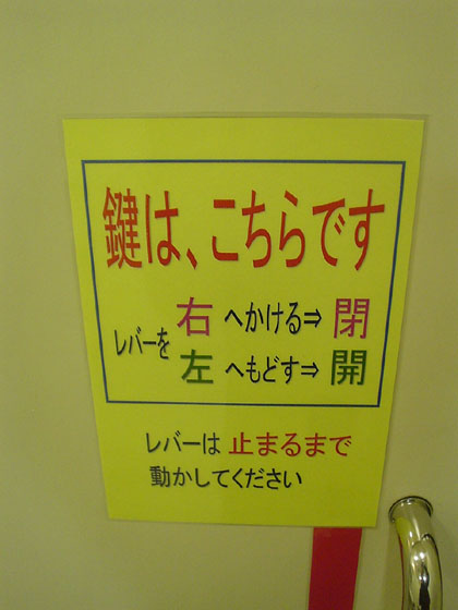 多目的トイレの鍵の部分はよくある回転錠ですが、