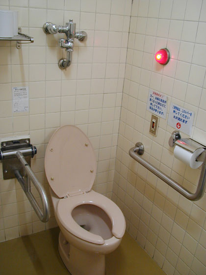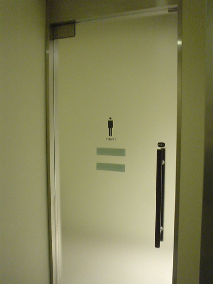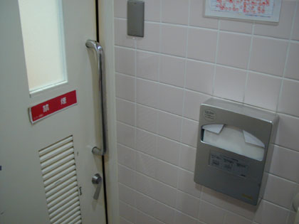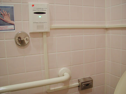 一般男性用トイレ前(女性用のトイレの入り口には非常ベルがついている)