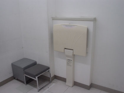 3階のトイレの脇はベンチのある小さめの休憩スペースとなっていて、多目的トイレとは別にそこにもオムツ台が用意されています。